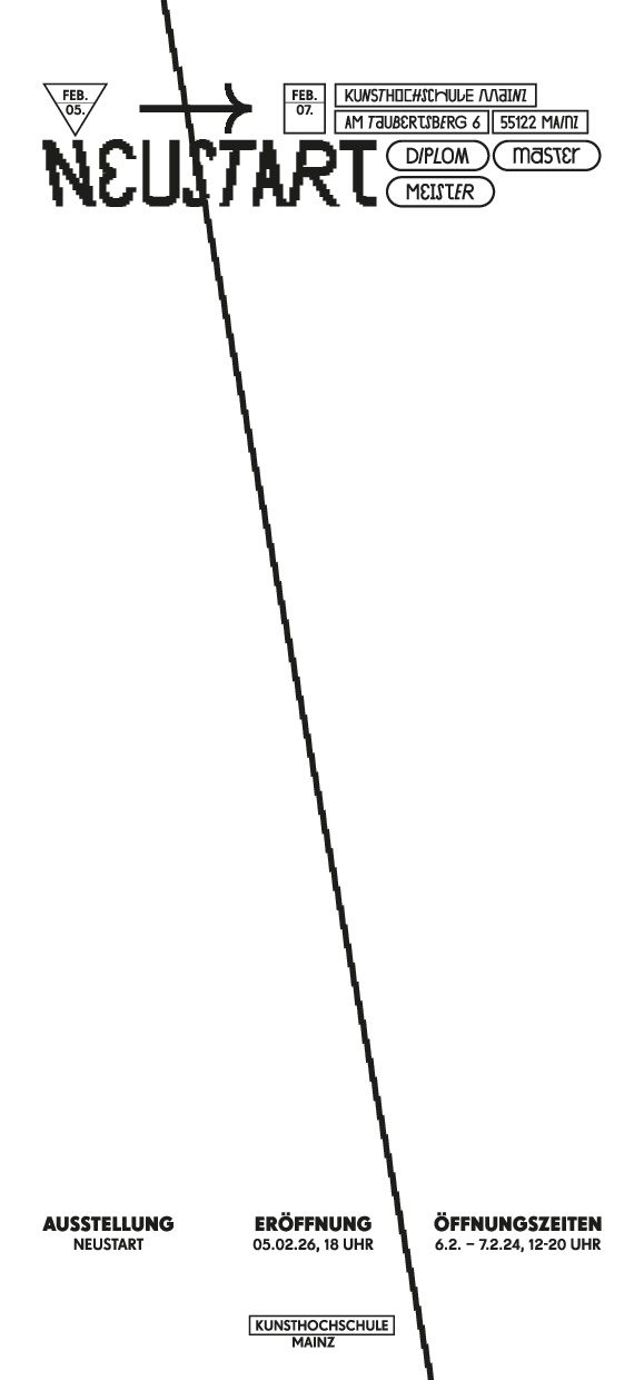 Zum Ende des Wintersemesters präsentiert die Kunsthochschule Mainz unter dem Titel NEUSTART wieder die Abschlussarbeiten ihrer aktuellen Absolventinnen und Absolventen.